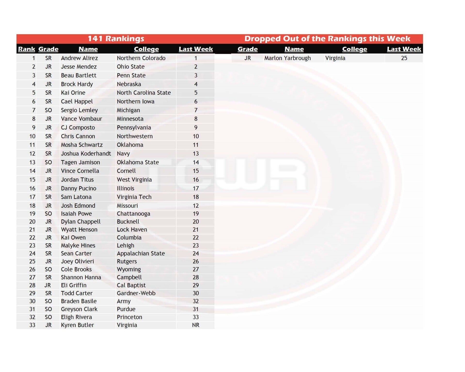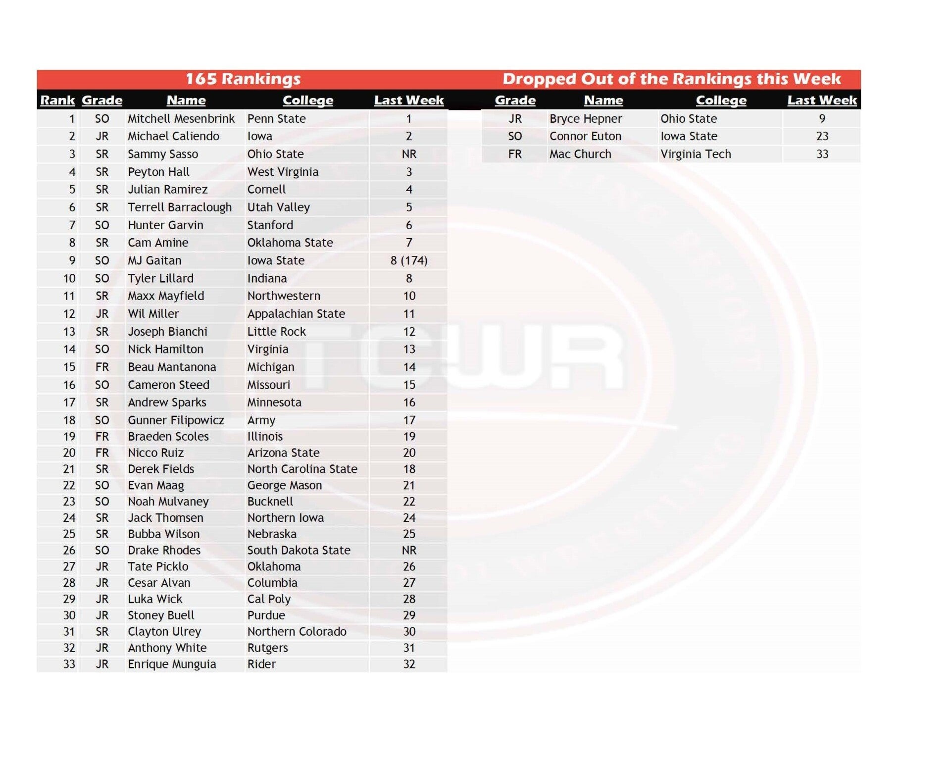 Rankings (11/18/2024)